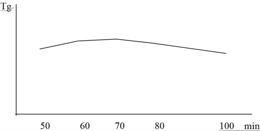 產(chǎn)品層壓過程固化時(shí)間對基板的Tg 的影響,與固化溫度相類似。我們做了以下試驗(yàn):在相同固化溫度與層壓壓力下,不同固化時(shí)間對基板Tg 影響的對比試驗(yàn)。層壓固化時(shí)間分別取50min,60min,70min,80min,100min,采用相同的層壓壓力,保溫時(shí)間都是60min。我們發(fā)現(xiàn)基板的Tg 在固化時(shí)間70min 時(shí)為最高(見圖67)。時(shí)間低于60min,由于基板固化不充分,所以其Tg 偏低;時(shí)間高于80min,樹脂將開始出現(xiàn)降解,溫度越高,降解現(xiàn)象越嚴(yán)重,所以其Tg 偏低。從圖上看,固化溫度對基板Tg 的影響明顯大于固化時(shí)間。