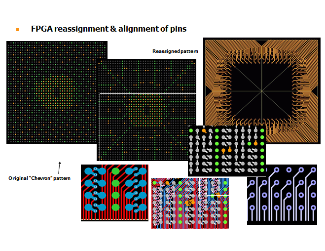 允許更多的跡線連接BGA內(nèi)部行上的引腳。如圖6所示,對于這個1.0 mm BGA,只有兩條跡線可以在表面上的通孔之間逸出。但是在盲孔下方,現(xiàn)在有六條跡線可以逃脫,路由增加了30%。利用這種技術(shù),連接復(fù)雜的高I / O BGA需要四分之一的信號層。盲孔布置成形成橫跨,L形或?qū)蔷€形成的林蔭大道。使用哪種構(gòu)造由電源和接地引腳分配驅(qū)動。這就是為什么對于FPGA來說,重新編程電源和接地引腳的位置可以非常高效。
