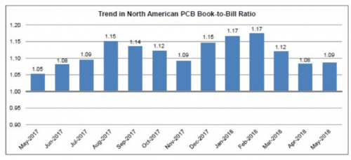 2018年7月4日,美國伊利諾伊州班諾克本 — IPC — 國際電子工業聯接協會? 發布了《2018年5月份北美地區PCB行業調研統計報告》。報告顯示5月份北美PCB訂單量和出貨量均以強勁的速度增長。