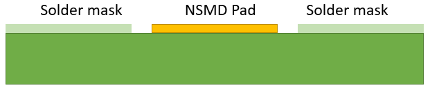 用于防止橋接的NSMD焊盤及其阻焊層凸版的側視圖。NSDM焊盤和阻焊層之間的間隙為多余的焊料提供了空間。